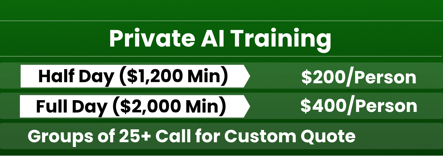 Whether your team needs an online course they can take at their own pace, a private hands on training course, or both, we have a path that fits how your business operates. No tech background needed! No generic slide decks. Just practical skills your people can use right away.